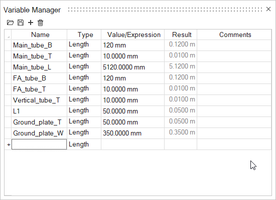 提示: 要查找并打开工具,按 Ctrl+F。更多信息,请见查找和搜索工具。 - 对于 Main_tube_L,请确保长度为 5120 mm。