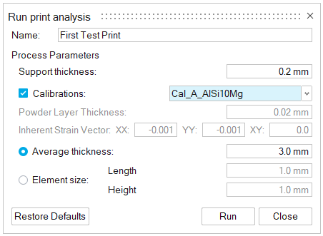 设置您的进程参数。启用校准并从下拉菜单中选择 Cal_A_AlSi10Mg。