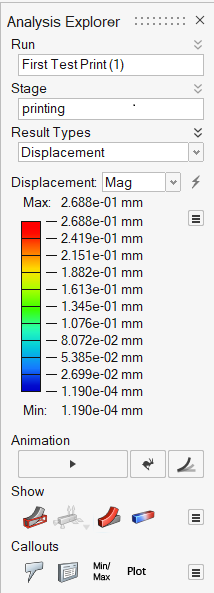 - 尝试为结果添加动画效果,以查看打印仿真期间打印材料如何变化。