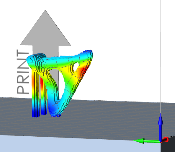 此方向将最大化构建高度,以避免零件因冷却而变形。