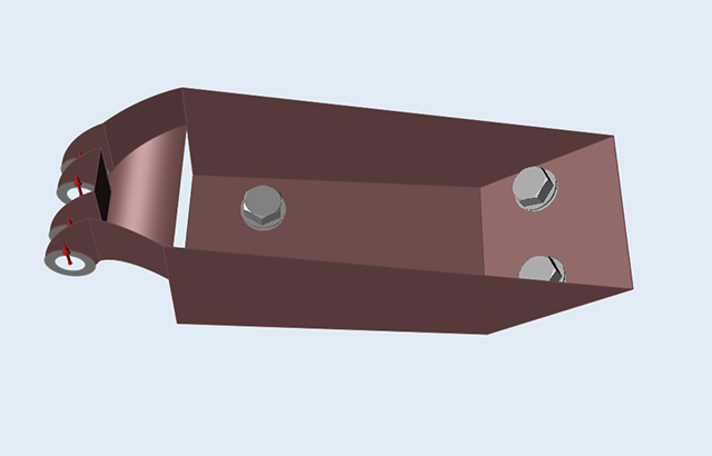 注意:连接至远处螺栓的多余材料和更多载荷正一起转移到这些螺栓上。