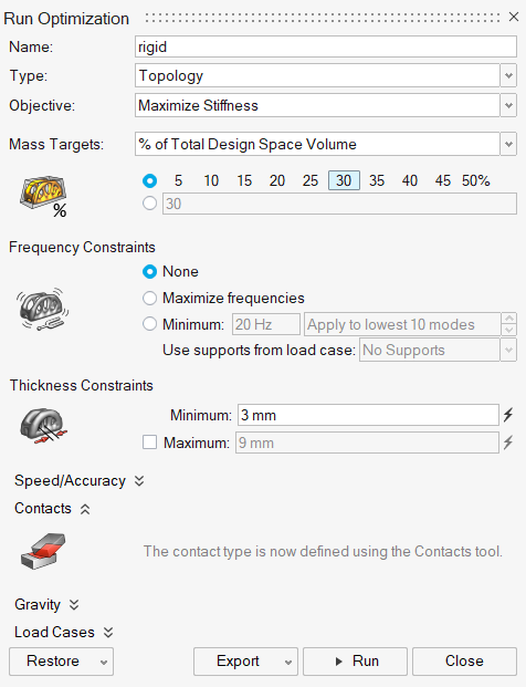 在“结构仿真”功能区上,点击优化工具组图标上的运行优化