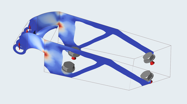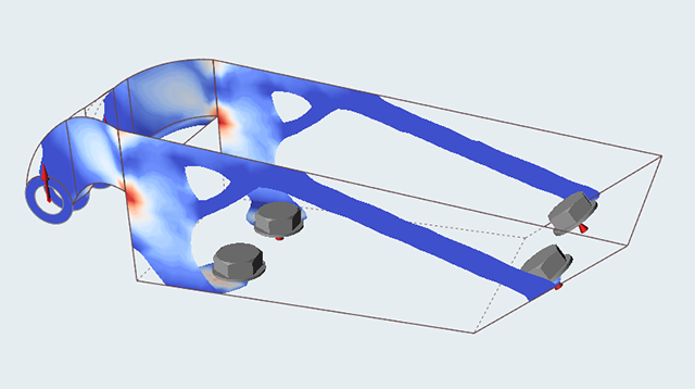 注: 优化和分析模型中使用的连接刚度会对所获得的结果产生重大影响。针对柔性螺栓连接使用 Huth-Schwarmann 方法或用户定义的刚度可以显著改善 Inspire 生成的结果,但仍应仔细预估刚度值。