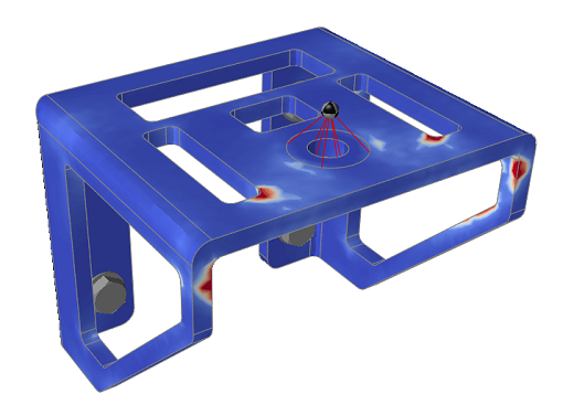 这可以突显具有最高相对应变的结果区域。将材料添加至这些应变较高的区域是一种增加固有频率的好方法。