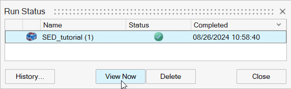 当分析结束后,选择“运行状态”窗口中的运行,并点击现在查看以查看结果。