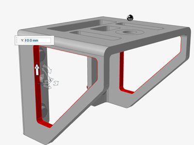 点击 Y 平移箭头并在框中键入 10 mm,以沿 Y 方向移动开孔。这可以将材料添加至应变能密度较高的区域,而无需更改设计的质量。