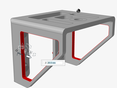 点击 Z 平移箭头并在框中键入 20 mm,以沿 Z 方向移动开孔。
