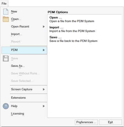 打开、导入并将文件保存到 PTC Windchill™ 或 Siemens Teamcenter™。
