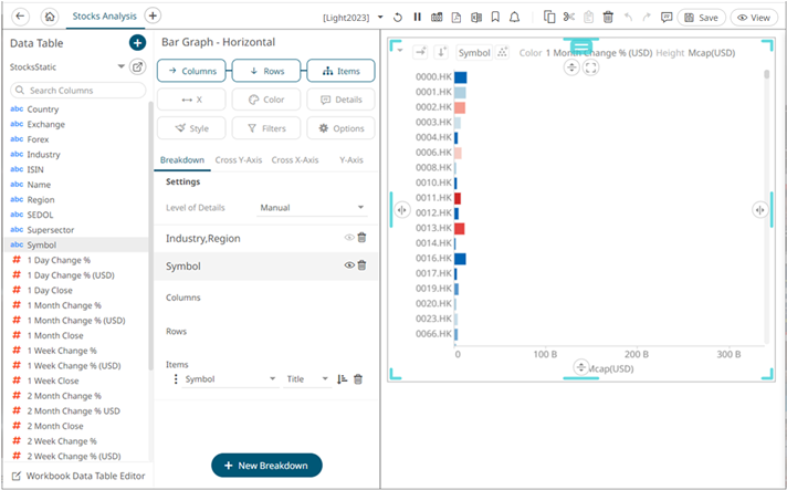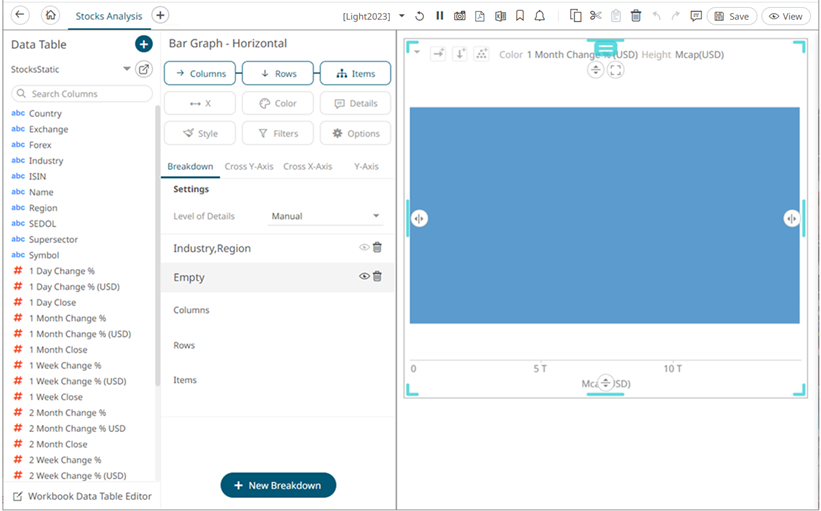 - To add more breakdown levels, drag text columns to the Items pill or drop area.