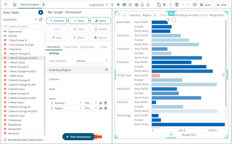 Select a breakdown under the Breakdown tab of the Visualization Settings pane and click