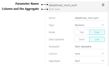 - For the Data mode, the parameter is given a data-driven value either Once or Live.