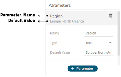 The section expands to allow definition of the parameter name and default value.