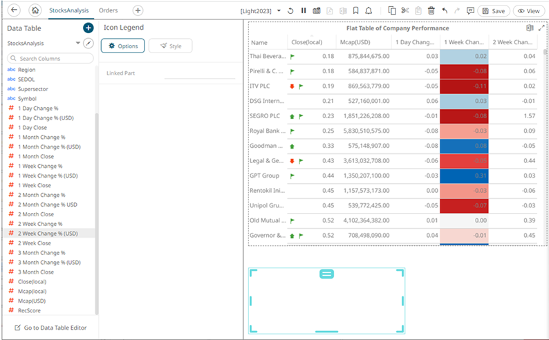 The icon legend is connected to its parent visualization and the link between them is displayed. The icon variables are retrieved from this visualization and displayed in the legend.