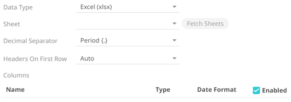 For Excel file type, select the required sheet and adjust the headers on first row, if needed.