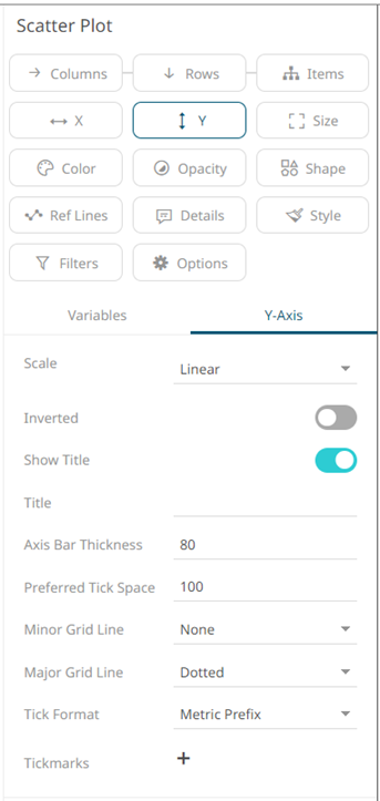 Or also, by clicking on the Y-Axis variable drop area and then selecting the Y-Axis tab: