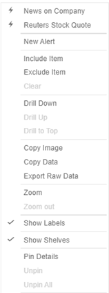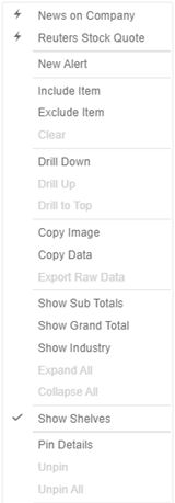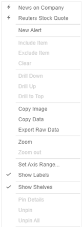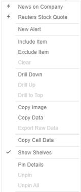 Available when Enable Shelves is enabled in the visualization’s General settings. Either check Show Shelves in the context menu or tap the Shelves slider in the General settings to display cross tab, breakdown, and variable shelves in the visualization. |