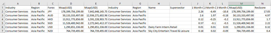 The data exported will be what appears on screen, or in a linked table. Specifically, all the columns that appear in the Detail pop-up, including: