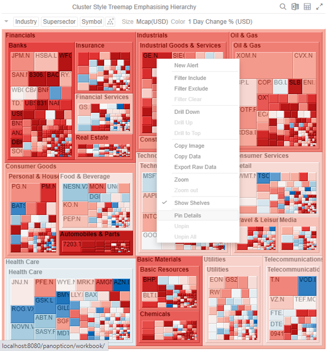 Right-click on a visualization item and select Pin Details in the context menu.