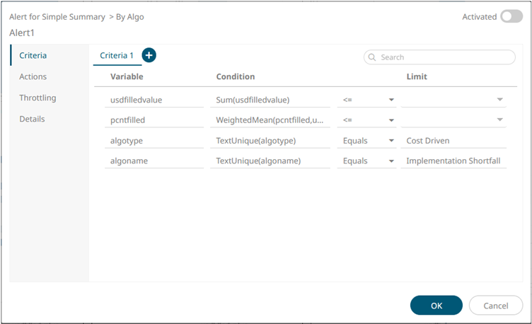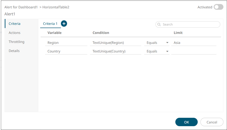 . You can also right-click a Criteria tab and select Rename to rename the criteria or select Remove to delete. The Remove option is disabled when only one criteria set is available.Variable