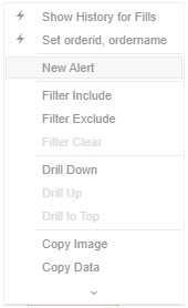 - Open a workbook on the Web client and right-click on a streaming numeric data in a visualization. Select New Alert in the context menu.