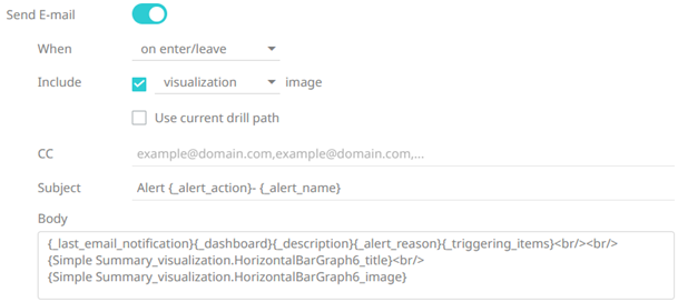 Determines whether the image of the visualization or dashboard will be included in the alert email.