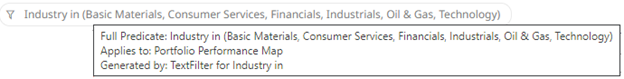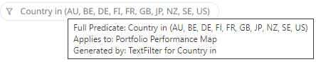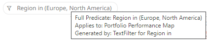 All of the predicates of the active filters are displayed. For this sample, there are three active filters.