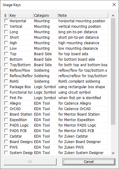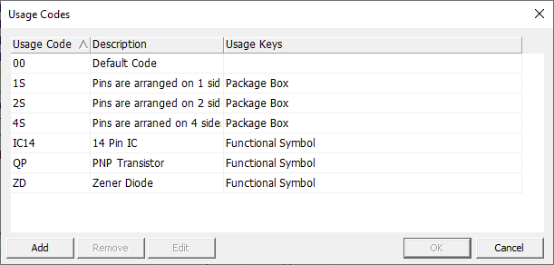 3. Usage Keys: Display the usage keys which are assigned the usage code.