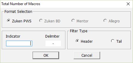 - Total Number of Macros: This feature only supports the Zuken PWS format.