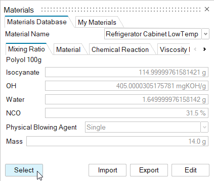 - Select a Material Name from the Materials Database or My Materials tab on the Materials dialog.