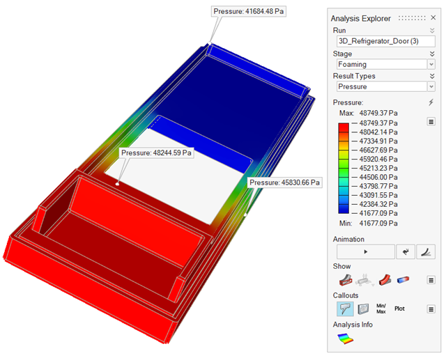 Call out and review values for a selected result type at points of interest on your model using the callout icons in the Analysis Explorer.