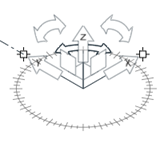 Rotate around the center of the tool Drag the curved arrows