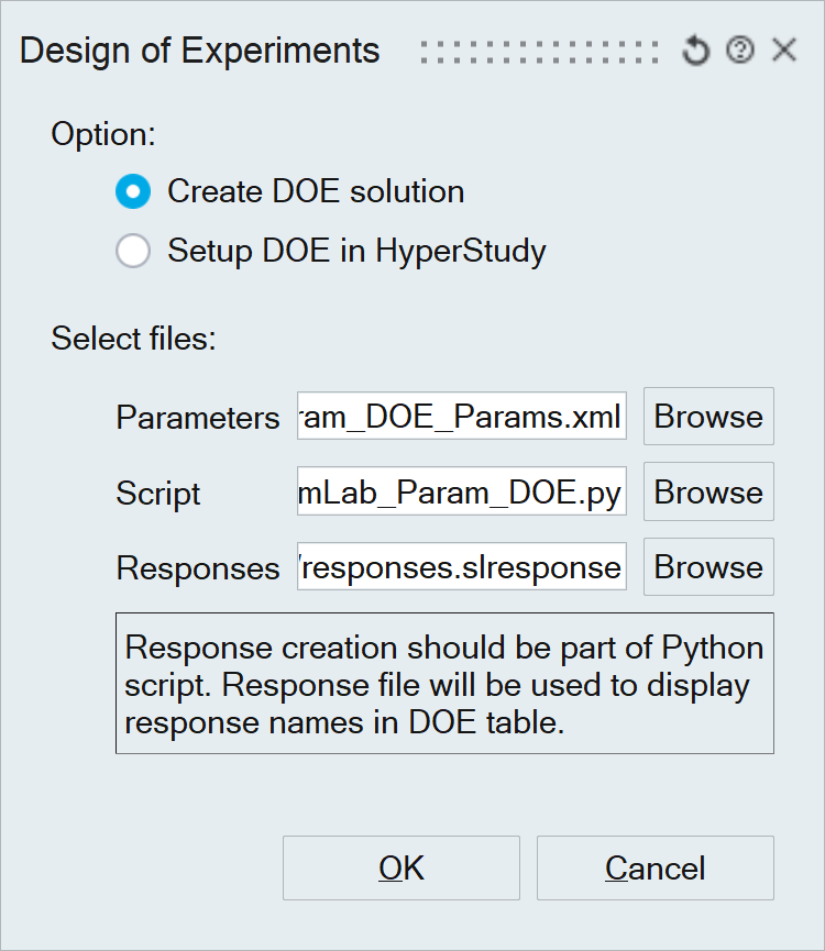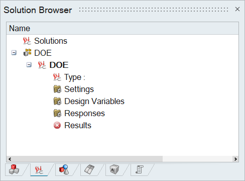 This will create a DOE solution in the solution browser. This will guide the user to set up and execute experiments.