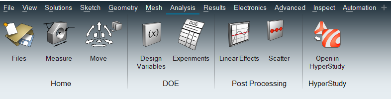 To define a set of experiments, select the “Using script” icon in DOE secondary ribbon and select all the required files.