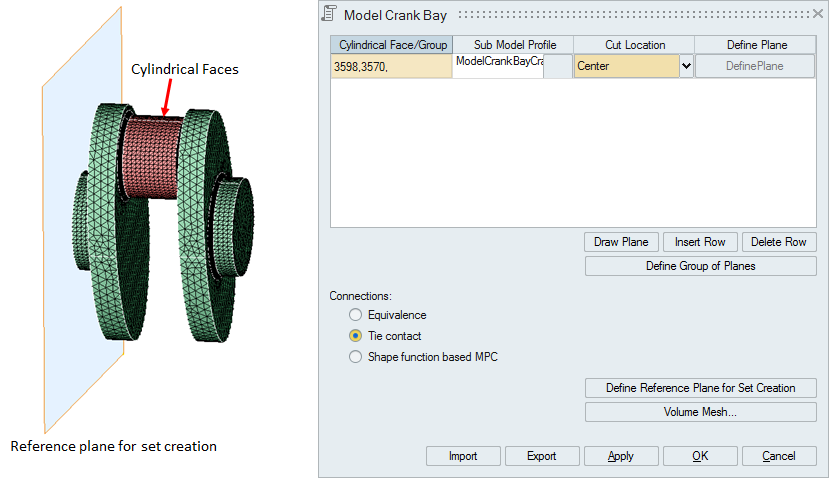 • Define Reference Plane for Set Creation: Plane definition is used to arrange the RBE center nodes.