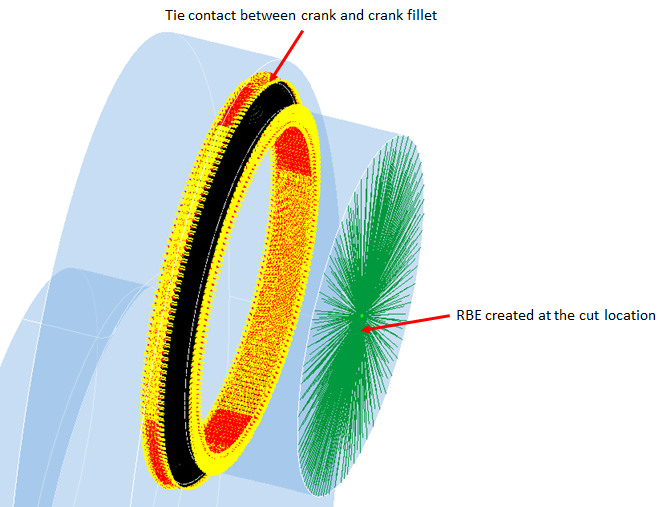 Node and elements sets are created using nodes, elements in the crank fillet.