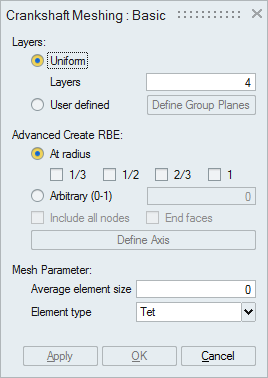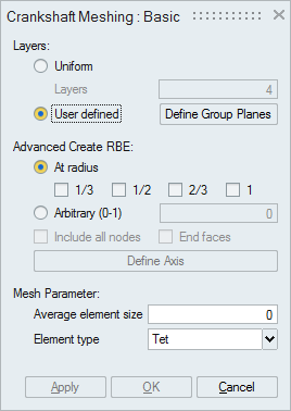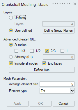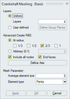 If there are oil holes present in the crank model, no hex/wedge elements will be created.