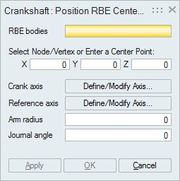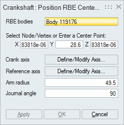 The position RBE nodes tool is used to position the center node of the RBEs with the specified arm radius and the journal angle with respect to the reference axis.