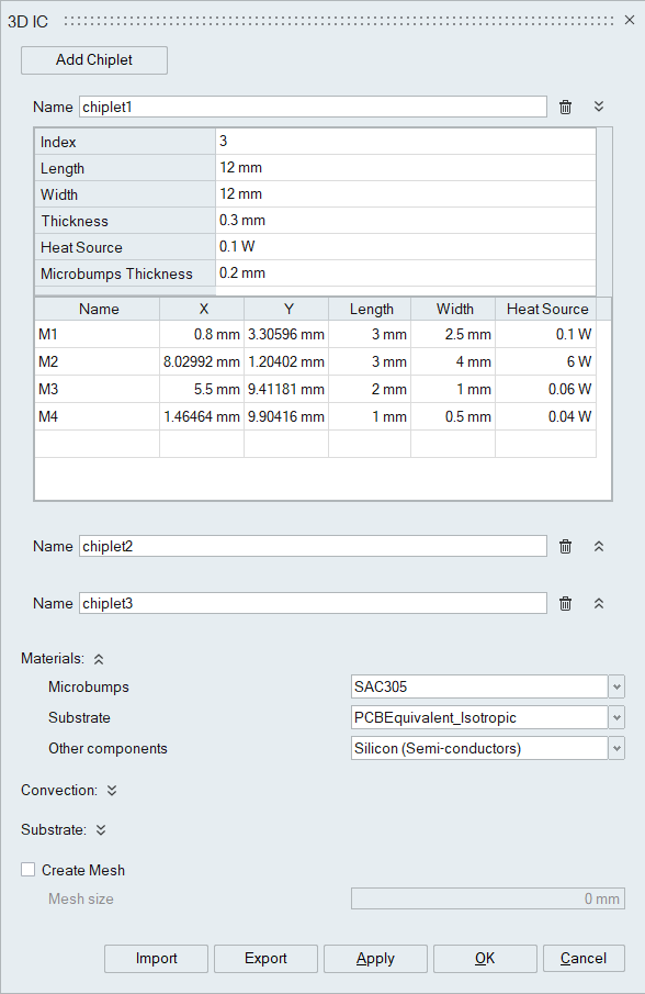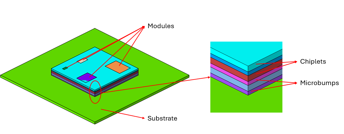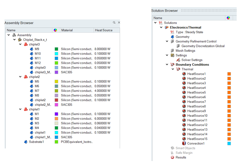 In the electronic design automation field, a floor plan of an integrated circuit refers to a tentative placement diagram of its major functional blocks. The location of these blocks is a crucial aspect of floor planning, as it will have a significant impact on the overall performance of the design. The power consumption of each block within the system differs, leading to varying temperature distributions around them. This tool is used to set up the complete floorplan solution with chiplet stack and necessary boundary conditions like heat source, convection and materials.