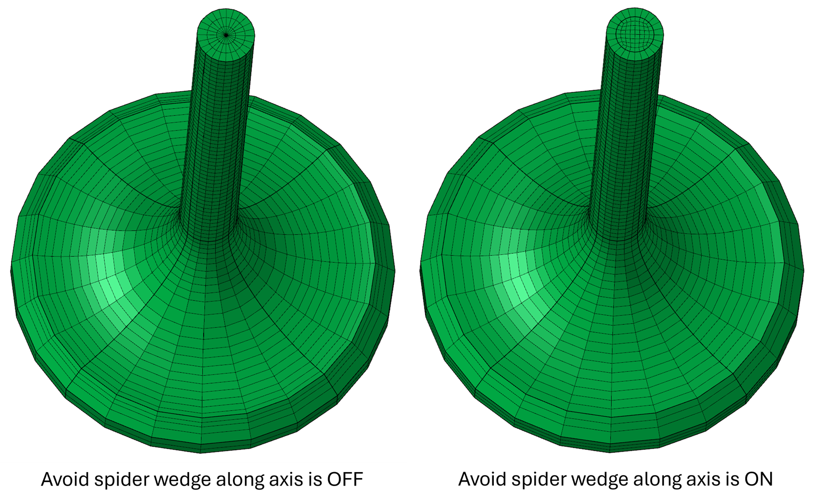 For axis symmetric and screw bodies, it will create hex elements along the axis instead of wedge elements.
