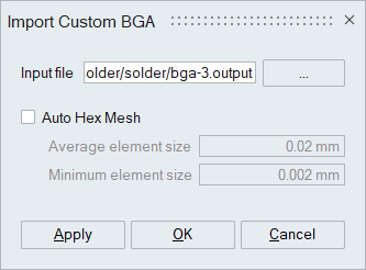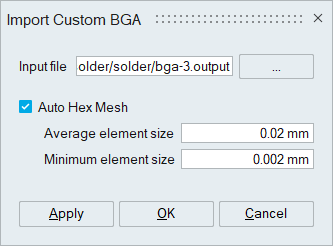 This option is used to create hex mesh automatically for the BGA shapes while importing.