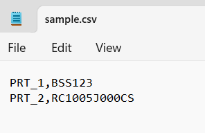 Sample csv file format: