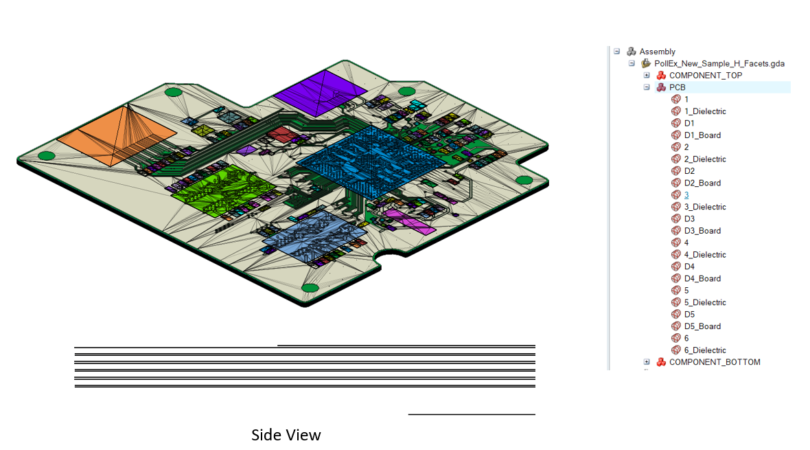 This tool helps connect all the different parts of a circuit board, including the parts on the top and bottom. The parts on top connect to the top layer of the board, and the ones on the bottom connect to the bottom layer. This creates shared connections on the board's surface.