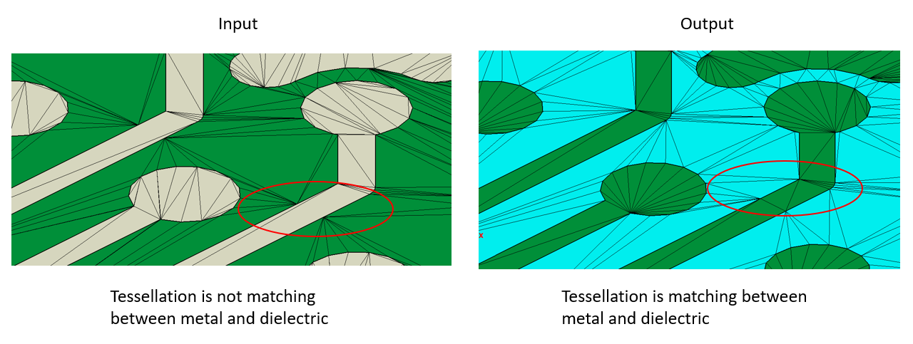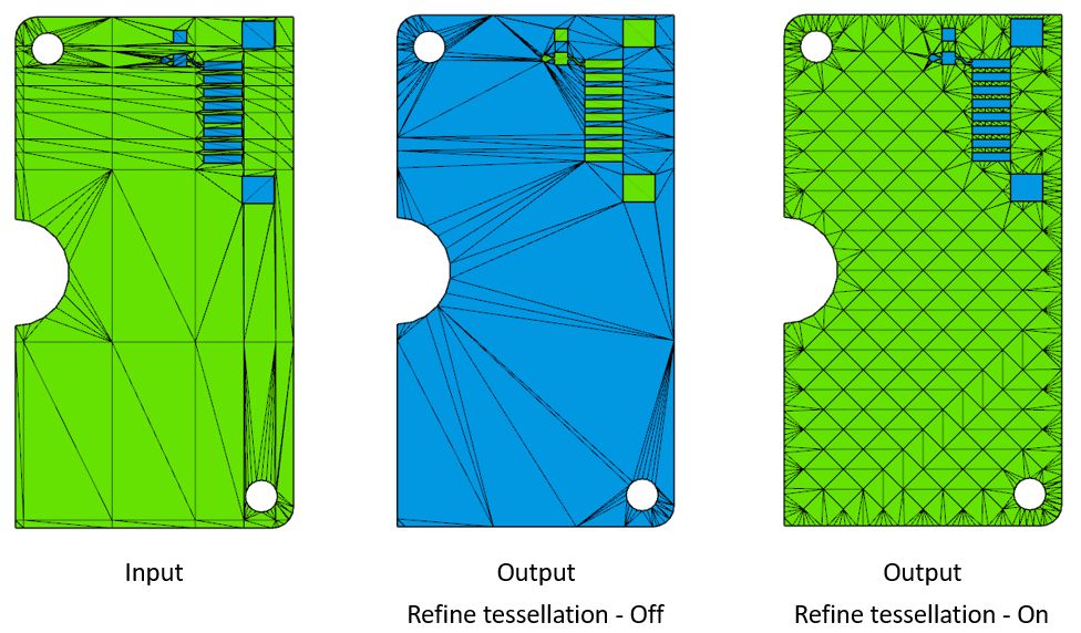 This option helps in refining the tessellation wherever possible. Wherever there are long, straight edges, the tessellation will be refined based on the input size. This improves the success rate during subsequent surface meshing.