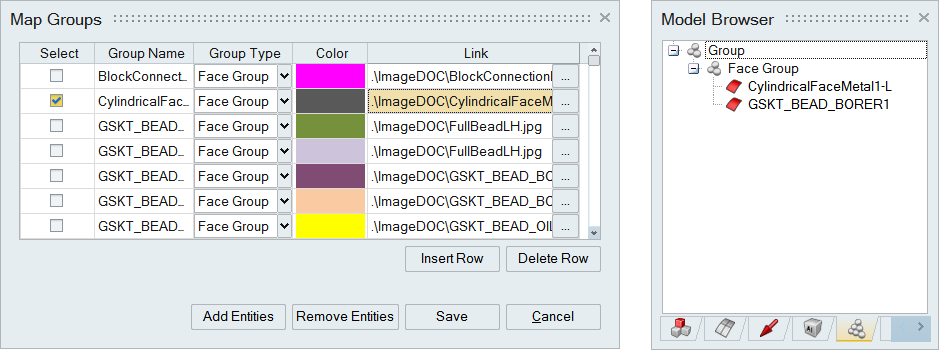 When Map Groups dialog is opened, Select Features, Select Adjacent Layers, Faces in CAD, Edges by Plane, Select Associated Entities, Edges by plane, Edges by length, Select Adjacent, Faces by Plane, Identical Faces, Show Faces By color and Associated Groups dialogs can be accessed as secondary dialog for face and body selection without closing the Map Groups dialog.