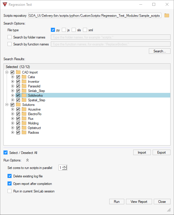 This tool is used to run regression test for SimLab using scripts in batch mode (Python, Jscript, XML & SLS).
