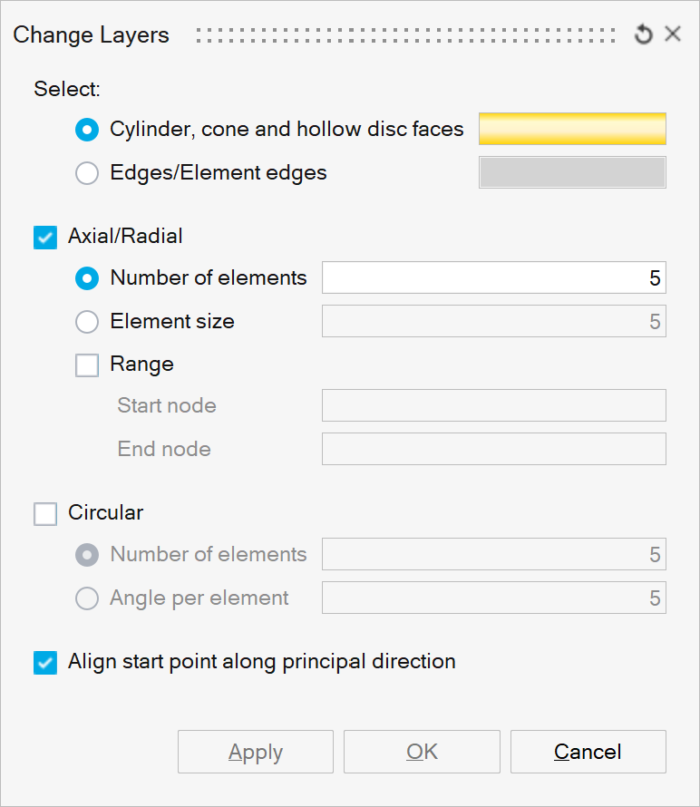 The layer along the axial direction can be changed using this option. In case of disc/hollow disc face, the layer along the radial direction will be changed.