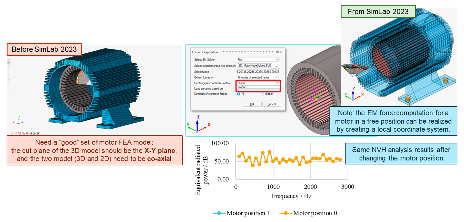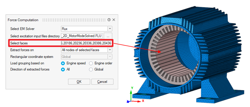 • During the force computation process, SimLab will call Flux in the background where the actual computation takes place. Once the force computation process is finished, the force file (.FEM) will be automatically converted as the SimLab LBCs (PointForce and ExcitationLoad).