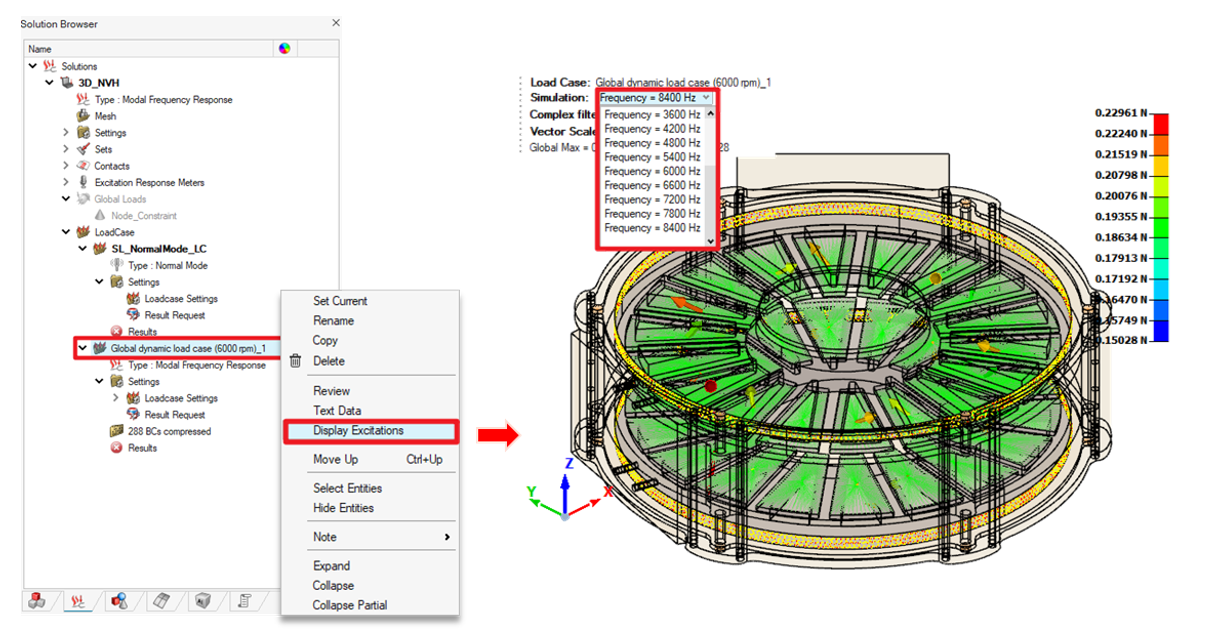 • Engine Order - The excitation loads are grouped based on the frequency (order) across all available speeds.