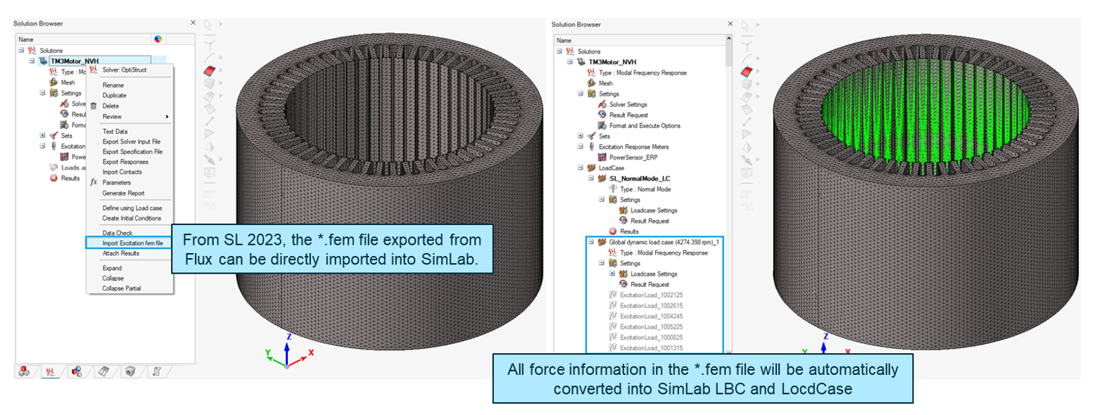 Note: Users can also import an electromagnetic force file (*.FEM) exported from the Flux I/E context into Simlab. And the file can be also automatically convert to SimLab LBCs, as shown below: