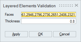 Mesh | 3DCreate | Layered Elements automatically changes the thickness at nodes to achieve better quality or to avoid element intersections. This option is used to identify those regions and user can do the cleanup to avoid thickness correction. The identified element regions will be created as groups based on connectivity.
